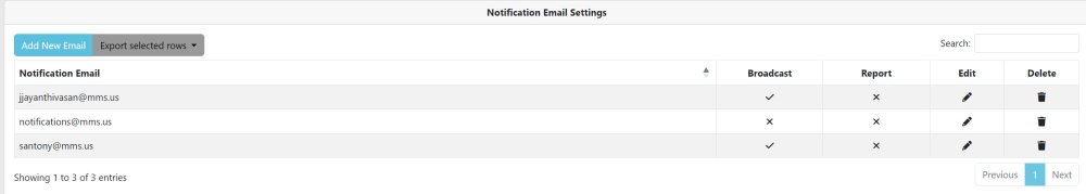 New email address can be entered and added to broadcast and/or report notifications. Please note that due to spam and security rules a maximum of 5 destinations can be configured (you can use internal distribution lists).