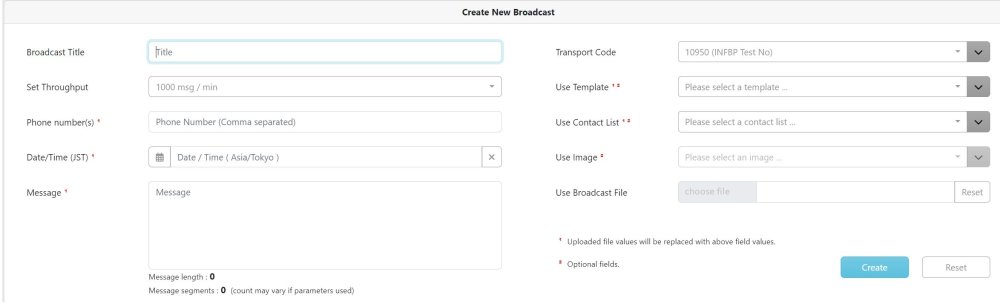 Use Image (optional): If your transportcode is provisioned for multimedia sending you can use this feature to send the same image to all mobile numbers in your broadcast.