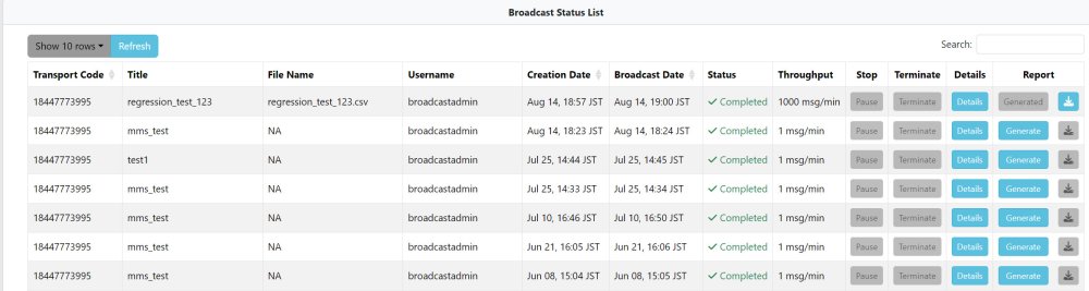 The status section provides useful information about past and upcoming broadcasts. View details of completed broadcasts and cancel pending broadcasts. Additionally you have detailed control over larger ongoing broadcasts that can be paused, resumed, or terminated from this section.